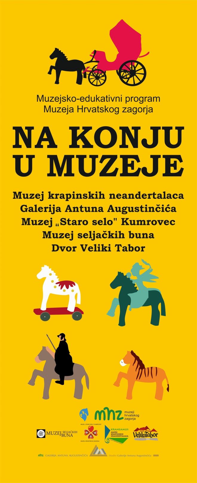 Program je trajao 5 tjedana i obuhvatio je različite interaktivne radionice za djecu i njihove članove obitelji, a svakog su se vikenda radionice održavale u različitim muzejima koji svi zajedno čine Muzeje Hrvatskog zagorja. Zajednička tema bila je – konj, pa su tako u Muzeju seljačkih buna drveni konjići dobivali vojnu opremu, u Galeriji Antuna Augustinčića na konjiće je zasjeo jahač – skulptura od žice i glinamola, u „Starome selu“ u Kumrovcu konjiće se bojilo na tradicionalni način. U Muzeju krapinskih neandertalaca djeca su naučila sve o povijesti i razvoju konja, dok su u Dvoru Veliki Tabor svome konjiću mali sudionici radionice izradili drvenu kočiju i prikopčali je na urešenoga konja. U okviru programa za djecu je oblikovana posebna publikacija s naljepnicama.