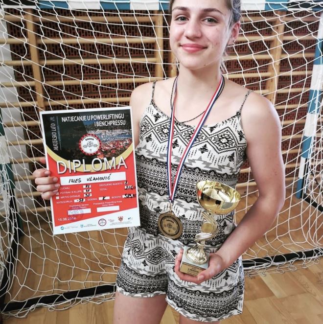 Powerlifterica Ines Vlahović koja je kadetkinja do 57 kg s totalom 215 (85 čučanj , 40 kg bench press i mrtvo dizanje 95 kg ) osvojila je zlato .