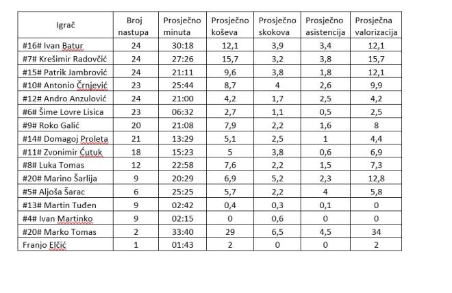 Zvonimir Ćutuk se od igrača za „pokazivanje“ prometnuo u igrača koji postiže 5 koševa i 3,8 puta uspješno skače. Posebno plijeni njegovo izdanje u Osijeku gdje je Vrijednosnicama Osijek postigao 21 koš i 7 puta uspješno skočio. To pokazuje da je u ovom momku još puno skrivenog potencijala. Jedini igrač s kojim Ivan Tomas nije uspio napraviti korak naprijed, je Domagoj Proleta, no sasvim sigurno za to je više odgovoran sam igrač, nego trener. Proleta je igrač sjajnih predispozicija, svojevremeno ga je zapazio i Real koji ga je zajedno s Lukom Dončićem doveo u svoj pomladak, što dovoljno govori o njegovoj kvaliteti. Proleta definitivno ima veliki potencijal, no ako ne popravi igru u obrani teško će se odmaknuti od Premijer lige.