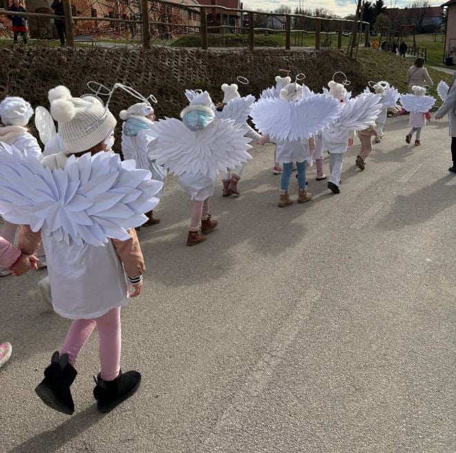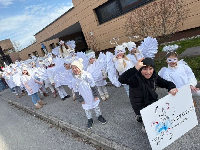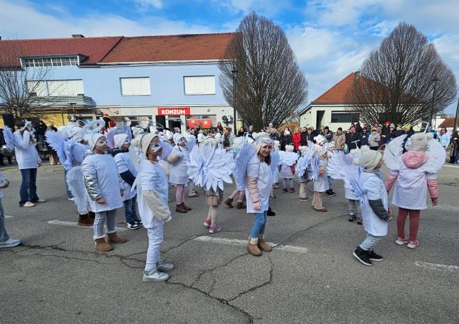 Osim polaznika male škole općinskog Dječjeg vrtića, u povorci su sudjelovali i mališani iz privatnih obrta za čuvanje djece Malci i Točkice, zatim dvije grupe polaznika produženog boravka Osnovne škole Sveti Križ Začretje, mlada skupina svetokriškog KUD-a koja je oduševila igrokazom i glazbenim nastupom, a publiku i stručni žiri, koji je ocjenjivao maske, posebno je razgalilo četrdesetak mališana iz popularnog dječjeg zbora Cvrkutići. Oni su na koncu odnijeli i prvu nagradu vrijednu 300 eura za svoju masku „Anđeli“.