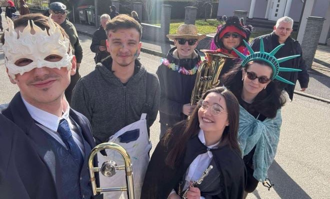 Nikako ne smijemo zaboraviti spomenuti popularne svetokriške puhačke orkestre koji su, također „pod maskama“, dali velik obol i ovogodišnjem Fašniku – Ciglešani na čelu, a Pačetanci na začelju fašničke povorke.