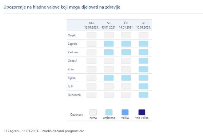 DHMZ upozorava na nadolezeći val hladnoće, ističući kako hladni val, slično kao i topli, može djelovati na zdravlje svih nas.