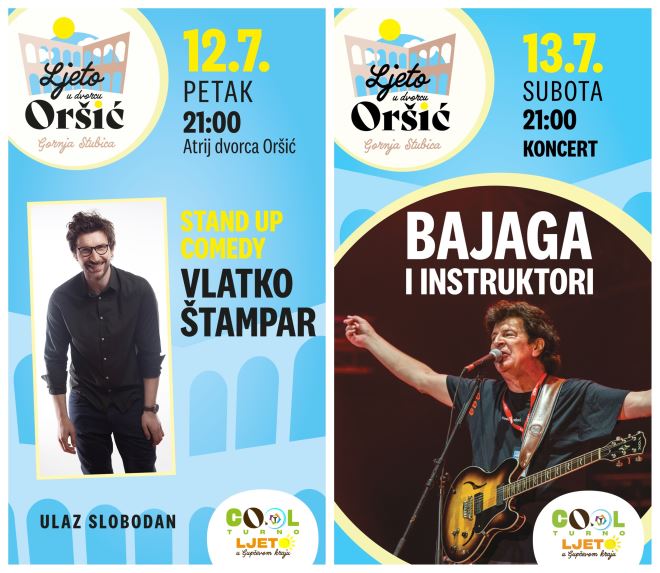 Dan prije samog koncerta, 12.7. (petak) u 21:00 sati, atrij dvorca Oršić dovodi malo smijeha uz Stand up komediju i Vlatka Štampara. Ulaz je besplatan! U subotu sve posjetitelje čeka pravi rock spektakl jer Bajaga, po prvi puta u sklopu turneje kojom slavi 40 godina, dolazi u Gupčev kraj. Jedan od komercijalno najuspješnijih pop-rock sastava u regiji, čija popularnost ni danas ne jenjava, podsjetit će publiku na nove, ali i legendarne stare hitove, stvarane kroz dugi niz godina među koje se svakako ubrajaju: Tišina, Ti se ljubiš, Zažmiri, Plavi Safir, Muzika na struju, 220 u voltima, Tamara, S druge strane jastuka…