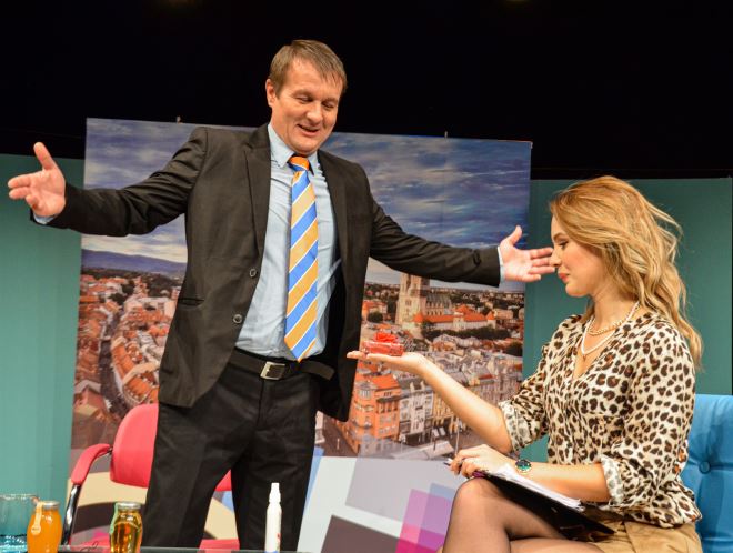 Nevena Vukes već je dva mjeseca posvećena ovoj predstavi. 'Probe su bile intenzivne i redatelj i kolega glumac Robert Krajinović nas je posvećeno vodio kroz cijeli proces. Svatko je imao svoje važne glumačke zadatke za istražiti vezano uz svoje likove, a konkretno je moj bio analizirati voditeljice mnogobrojnih TV emisija što lokalnih što nacionalnih televizija. Materijal je bio obiman i u moru svega i svačega na televiziji, imala sam zadaću izvući od svake po neki karakterističan detalj, a zatim se s istim tim detaljima poigravati na sceni. Ovo je meni prva komedija koju igram u kazalištu. Do sada su me redatelji vezivali uvijek uz melodrame ili drame, tako da je ovo bio za mene kao glumicu poseban proces istraživanja. Komedija zahtjeva poseban vid glumačke igre, koncentracije i brzine i u tome su mi Adam i Robert puno pomagali svojim sugestijama i prijedlozima – priča Nevena o ovom iskustvu.