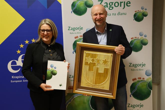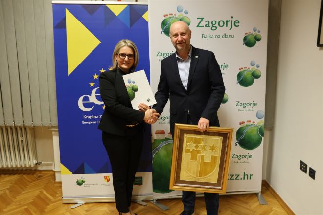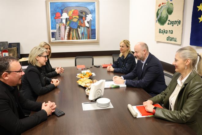 Delegaciju Hrvatskog nacionalnog vijeća u Republici Srbiji u sastavu predsjednica Jasna Vojnić, predsjednik Izvršnog odbora Marinko Katić i voditeljica Kabineta Mirjana Trkulja su zajedno sa županom Kolarom dočekale pročelnica Upravnog odjela za obrazovanje, kulturu, šport i tehničku kulturu Mirjana Smičić Slovenec te pročelnica Upravnog odjela za javnu nabavu i EU fondove Vlatka Mlakar. Gosti iz Srbije su detaljno izvijestili o odrađenim aktivnostima uz financijsku pomoć Krapinsko-zagorske u prošloj godini te su županu Kolaru na svoj dosadašnjoj potpori simbolično zahvalili grbom Krapinsko-zagorske županije izvedenom u tradicionalnoj tehnici slame.