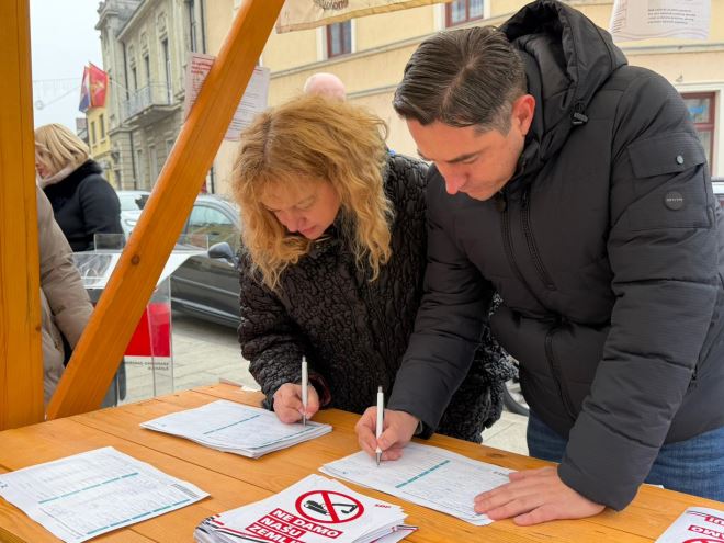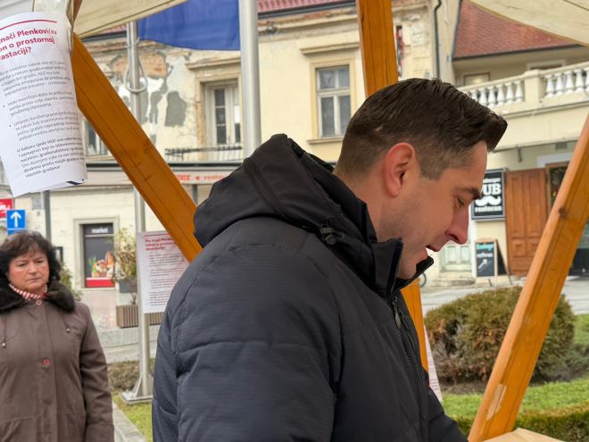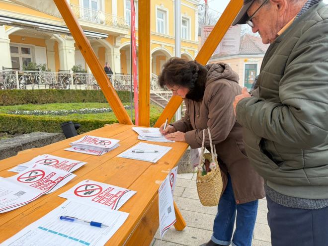 Na Trgu Ljudevita Gaja u Krapini do 12 sati sakupljaju se potpisi protiv Zakona o gradnji koji je u ponedjeljak na glasanju u Hrvatskom saboru.