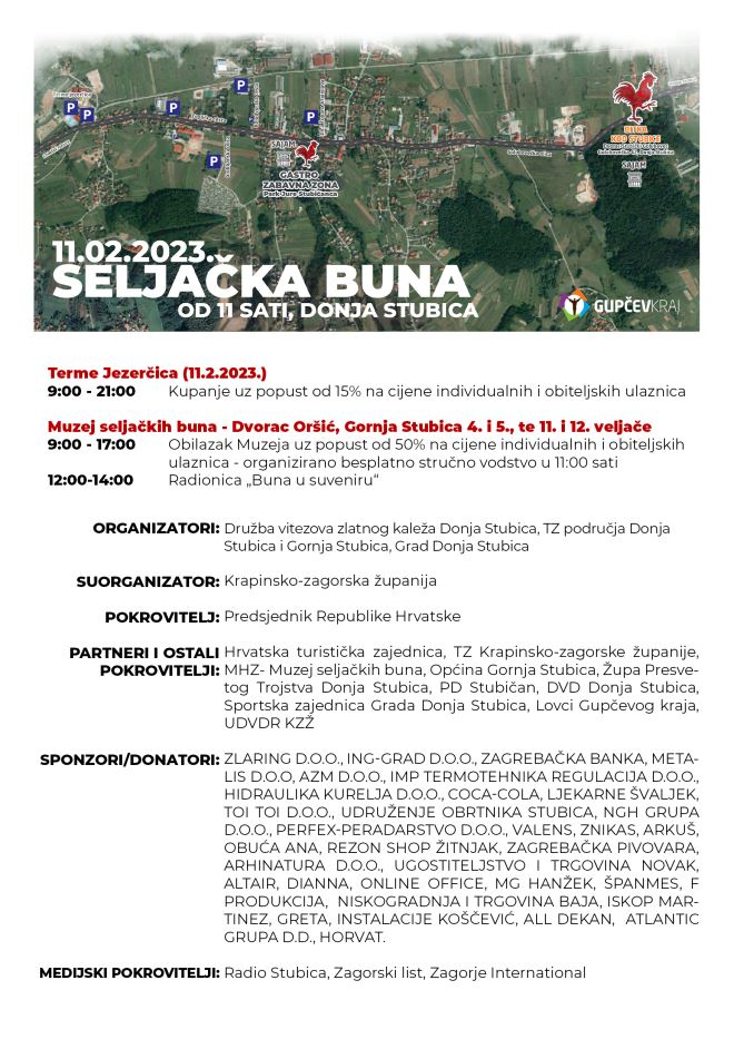 Buna trajeeee... ponovno će odzvanjati Gupčevim krajem kao spomen ustanka malog čovjeka u "borbi za pravicu“. Povijesna bitka koja je "pokazala šake” vlasteli prije 450 godina, ove godine slavi i 15 godina održavanja gdje će ponovno na tisuće posjetitelja imati priliku vidjeti oživljenu Seljačku bunu – Bitku kod Stubice između kmetova, predvođenim Matijom Gupcem, protiv zloglasnog Franje Tahija i njegove vojske. Jedinstvena i narodu posebna bitka, rekonstruirana je od strane Družbe vitezova Zlatnog Kaleža, a zajedno s TZ područja Gupčevog kraja, Gradom Donja Stubica i partnerima, priprema spektakl kakvog svi zajedno očekujemo.