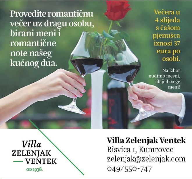 Na romantičnu večeru dragu osobu možete izvesti i u Villu Zelenjak Vantek, gdje su pripremili večeru u 4 slijeda s pjenušcem.