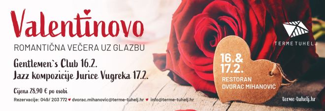 Čak dvije večere za Valentinovo, 16. i 17. veljače, za vas su pripremili u Restoranu Dvorac Mihanović u Termama Tuhelj.