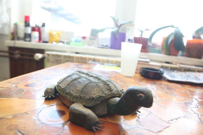 - Tražim nove ideje. Primam narudžbe, sami mi dajte ideju. Ja od drva napravim što god poželite. Nogu, cipelu, auto… - nestrpljiv je Zlatko koji je najpoznatiji po svojoj vjetrenjači visokoj 4 metra, koja je istrunula, ali si je napravio manju varijantu. Drvo nabavlja na pilani, od parketara prijatelja, na otpadu... Sve se iskoristi, a zahvaljujući Zlatkovom talentu koji je 'čučao' godinama, radi svakojake figure. Sada je trenutno inspiriran vrtnim figurama. Supruga radi u Zagrebu i kada dođe za vikend, svaki put je iznenadi novim rukotvorinama od drva. Podržava njegov rad, kao i on njezin hobi, a to je skupljanje starina. Na kraju nam je pogled zastao na pločama u dvorištu. Zlatko nam je ispričao da je imao psa starog 17 godina, koji je ove godine nestao. 'Složio' je nekoliko poruka za prolaznike, odnosno nepozvane goste: 'Pazi ne ulazi bez poziva, gazda mi nije normalan i vepra koji poručuje: Ne ulazi bez poziva, tata mi je doma.
