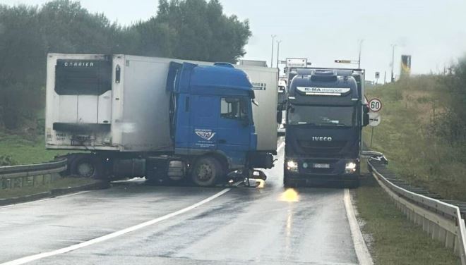 Neobična prometna nezgoda na sjevernoj obilaznici u Lepircu kod Bjelovara. Iz fotografije nije jasno što se točno dogodilo, odnosno je li u nezgodi sudjelovao samo jedan tegljač ili je došlo do sudara, piše Danica.
