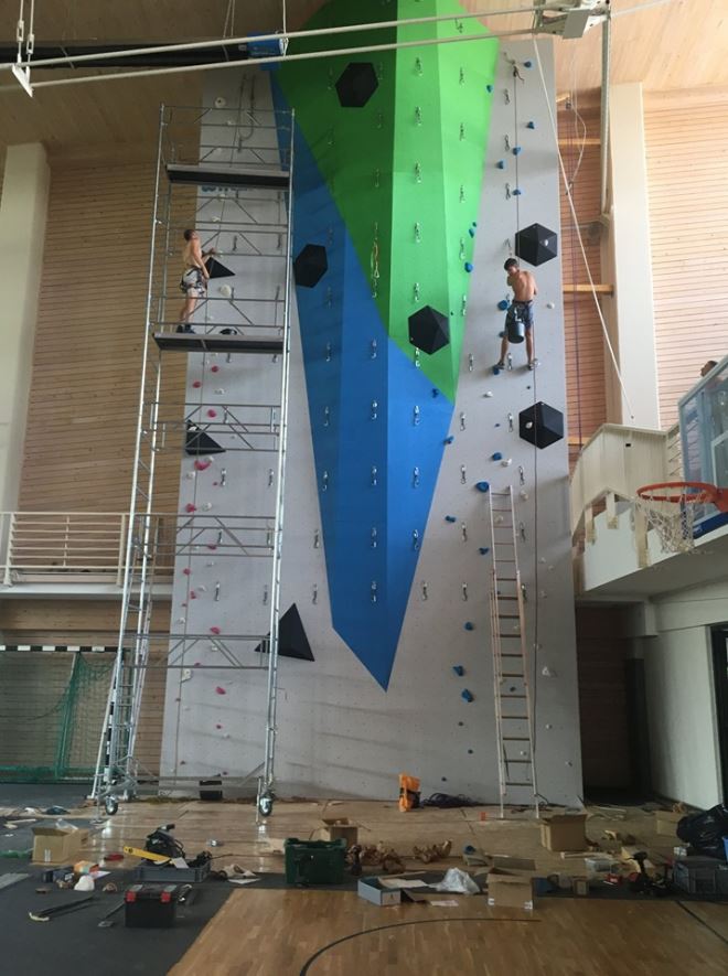 Postavljena je penjačka stijena s opremom, koja je ugrađena na nosivu betonsku podlogu, na unutarnjoj površini Sportske dvorane, dimenzija 6.1 mX12.2 m. Vertikalna stijena za penjanje za šest linija prikladna je za korištenje predškolcima, školarcima i odraslim osobama.
