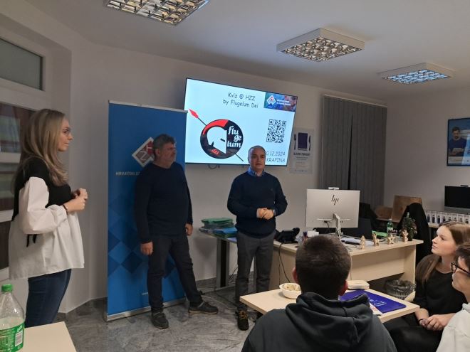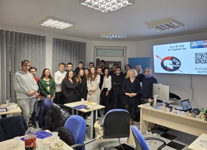 Tjedan cjeloživotnog učenja završili smo stoga zabavnim i poučnim kvizom, simboličkog naziva „Mislim, dakle jesam“, koji se održao 10. prosinca u prostoru CISOK-a u Krapini. Svrha kviza bila je ukazati na to da svi mi učimo i izvan sustava odgoja i obrazovanja i omogućiti dobru zabavu, izazov i ugodno druženje prijavljenim ekipama koje su se natjecale u znanju iz područja opće kulture i informiranosti. Sedam prijavljenih ekipa, koje su činili studenti ili maturanti Srednje škole Krapina, pozdravili su predstojnik Područnog ureda Krapina , Goran Vukmanić i dekan Veleučilišta Hrvatsko zagorje Krapina Nenad Sikirica. Kviz je organiziran u suradnji s već uhodanim organizatorom i kreatorom brojnih kvizova, Markom Cafutom, čiji je kvizaški alias Flugelum Dei. On je osigurao izazovnu i poticajnu, ali ugodnu i opuštajuću atmosferu i na nov i neočekivan način omogućio sudionicima da pokažu svoje znanje iz područja opće kulture, sporta, filmova, serija, glazbe, povijesti, geografije i još mnogih područja te usvoje i neka nova znanja. Cilj ovog događaja je ukazati na to da se učenje ne odvija samo u školi, već i u svijetu oko nas: slušanje glazbe, putovanja, interes za kulturu, sport, prirodna i tradicijska baština...