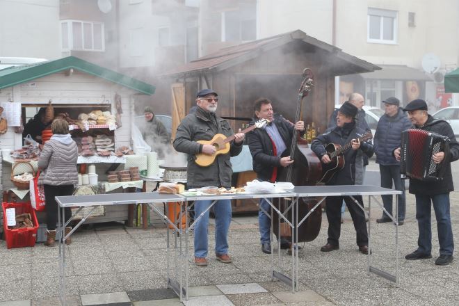 Ovo ugodno jutarnje druženje na tržnici domaćom su popevkom popratili Črleni lajbeki, a svi koji su posjetili tržnicu bili su počašćeni kuhanim vinom.