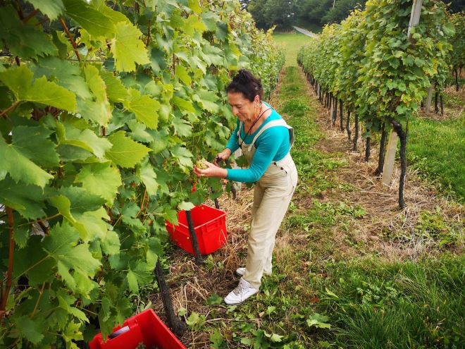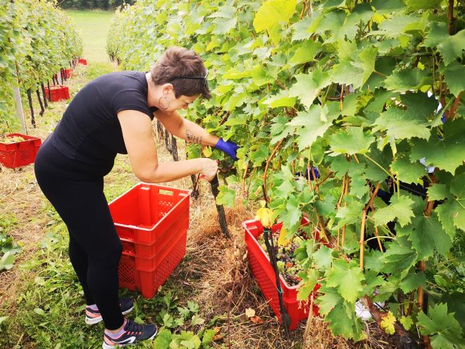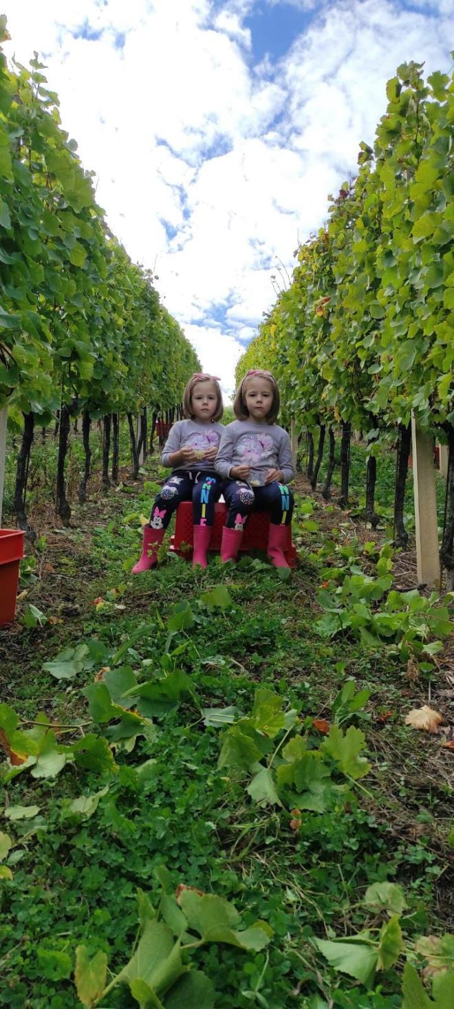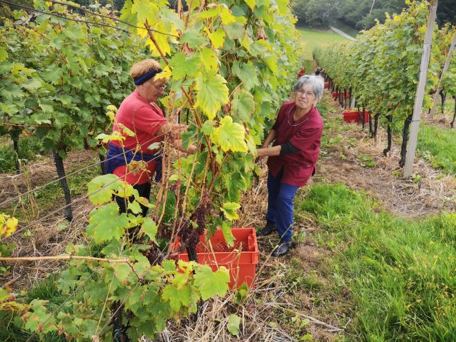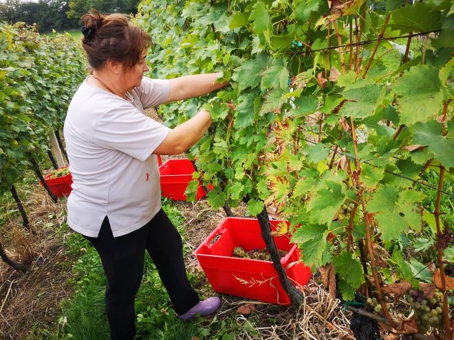 Na poljoprivrednom gospodarstvu obitelji Kunštek na Bregima Radobojskim berba grožđa je završila tek proteklog vikenda, a trajala je gotovo tri tjedna. Naime, u poljoprivrednom gospodarstvu Kunštek radi cijela obitelj, tata Zdravko, mama Zdravka, Kristijan, njegova supruga Iva i njihove prekrasne i vrijedne blizanke Adela i Antonela. Razlog što je berba trajala tako dugo je što na Radobojskim Bregima imaju hektar i pol vinograda starosti od 8 do 12 godina, a svaka od sorata: muškat žuti, silvanac zeleni i graševina, zastupljena je na posebnoj parceli. Postoji i vrhunska priča vina Kunštek, a to je Kontesa Nera, cuvee vino između frankovke, pinota crnog i cabernet sauvignona, vrhunskog vina izuzetno cijenjenog u Nizozemskoj i Njemačkoj. Obitelj Kunštek, a tu je glavni Kristijan kojem je specijalnost vinogradarstvo i vinarstvo, po želji i traženju kupaca, u podrumu kupažiraju odnosno miješaju i slažu vina.