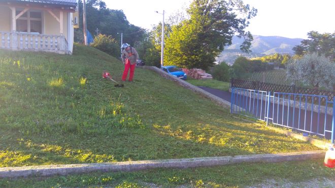 Mještani su podijeljeni u pet grupa po dva člana, napravljen je raspored košenja i točno se zna kada je koja grupa na redu za košnju trave, a potreban materijal - gorivo i flaks osigurava Općina Radoboj.