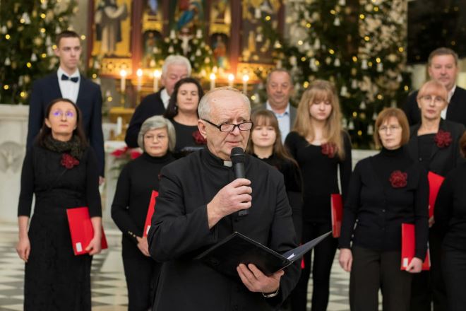 Klara Benjak, voditeljica koncertnog programa, pozdravila je sve prisutne starim katoličkim pozdravom Hvaljen Isus i Marija i svima zaželjela dobrodošlicu izražavajući nadu i vjeru kako će nakon koncerta svi poći kućama radosniji, noseći u sebi radost i veselje Kristova rođenja.