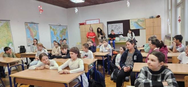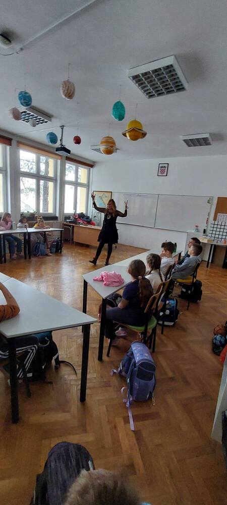 Priče na kajkavskom narječju najprije su odjeknule prostorima Dječjeg vrtića Škrinjica, gdje su mališane u svijet pripovijedanja uvele Ana Štrumfin i Jelena Grozaj. Program se potom nastavio u Osnovnoj školi Side Košutić Radoboj, u razredima od 1. do 4. te u 5. razredu.