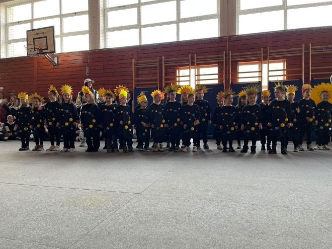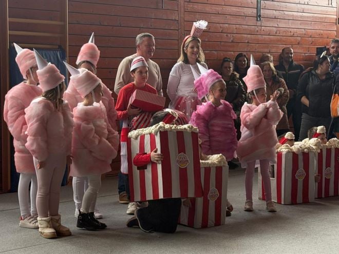 Na pozornici je nastupilo osam skupina: DV Škrinjica – „Zvjezdice“, PŠ Jazvine, PŠ Gornja Šemnica, 1.a razred, 2.a razred, 3. i 4.a razred, 5.a i 5.b razred te 7.a razred. Publika je uživala u svemirskim Zvjezdicama koje su donijele čaroliju svemira, veselim „Tic tac“ bombončićima iz Jazvina, kokicama i šećernoj vati iz Gornje Šemnice, razigranim pčelicama i bumbarima 1.a razreda te tematskom nastupu 2.a razreda „Kina nekad i danas“, koji je prikazao spoj tradicije i suvremenosti. Učenici 3. i 4.a razreda izveli su dinamičan „klavirski ples“, dok su 5.a i 5.b razred rasplesali dvoranu uz hit Rim Tim Tagi Dim izvođača Baby Lasagna. Program su zaključili duhoviti „Šeikovi iz Dubaija“ iz 7.a razreda.