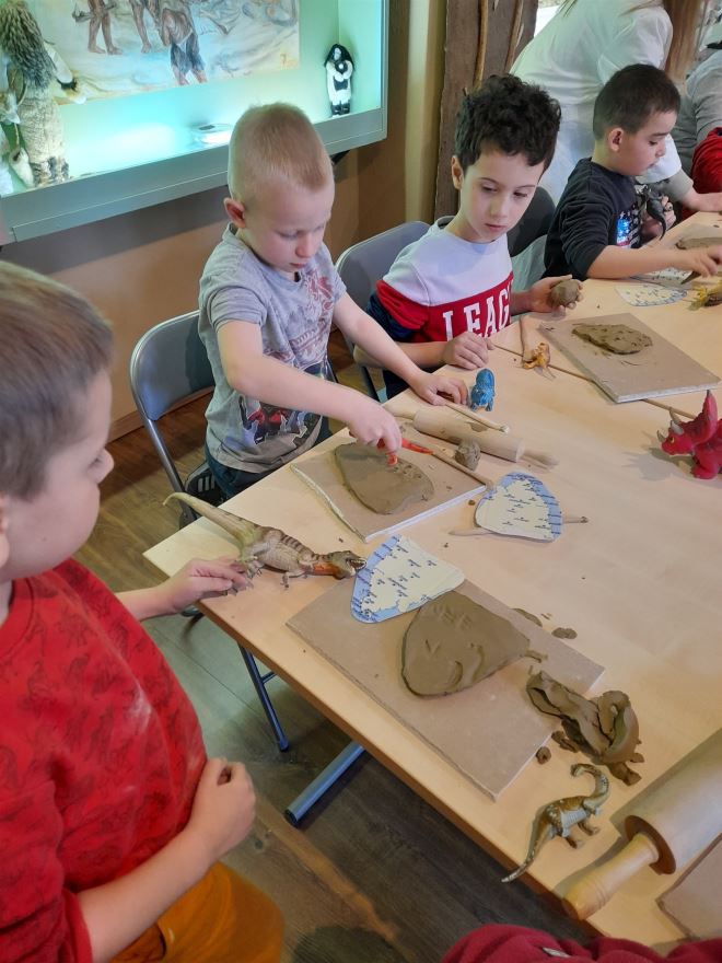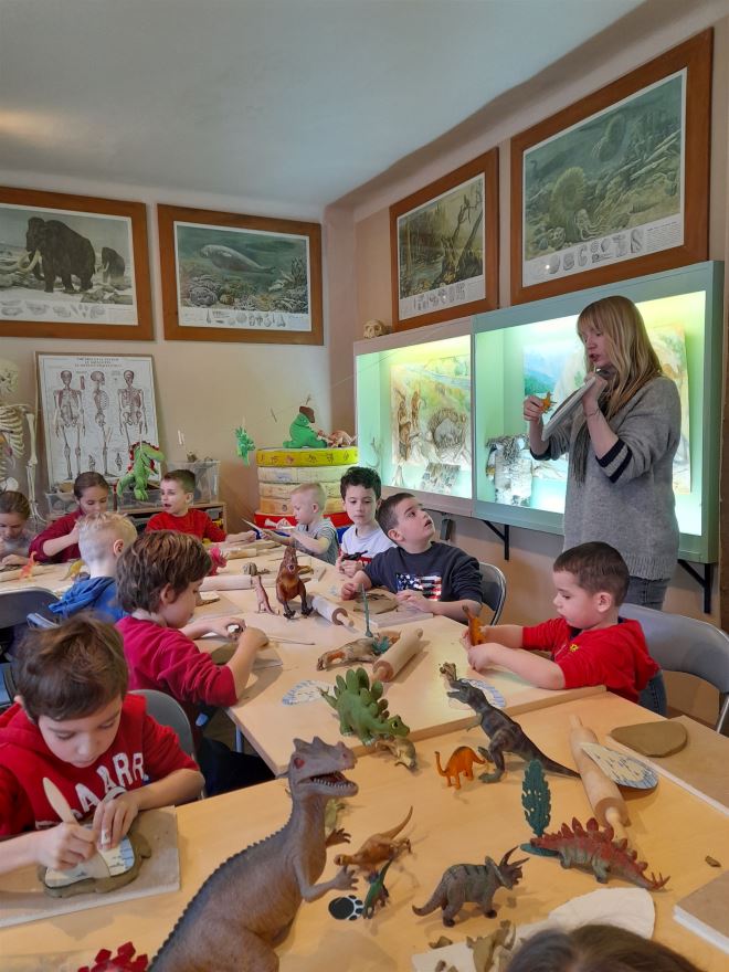 Mali sudionici ove poučne i kreativne radionice proučila su i kostur dinosaura vrste Tyrannosaurus rex u stalnom muzejskom postavu. Radionicu su osmislile i vodile kustosica pripravnica Natalia Mladineo i viša muzejska pedagoginja Lorka Lončar Uvodić, a u realizaciju se uključila i Irina Čižmek.