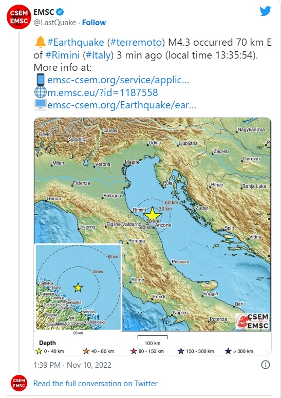 Epicentar potresa nalazi se u Jadranskom moru, između Ancone i Riminija.
