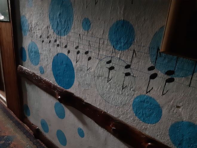 Raspelo je napravio od trsa, ogradu stubišta u rustikalnom stilu od dasaka koje izgledaju u potpunosti prirodno, zidove je oslikao notama omiljenih pjesama, a na gospodarskoj zgradi u dvorištu može se vidjeti i bicikl kojim je prije puno godina Jožica putovao na more do Pakoštana i natrag.– Ni'š to nije tu bez veze. A i meni je to lijepe. To kad dojde leto, tu se zaigramo, spijemo si pivo, to je užitak. Mir je, nismo na cesti, nikoga ne smetamo. Dobro je – kaže nam Jožica kojemu želimo da još puno kreativnih i originalnih ideja vrijednim rukama sprovede u unikatno djelo.