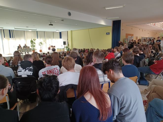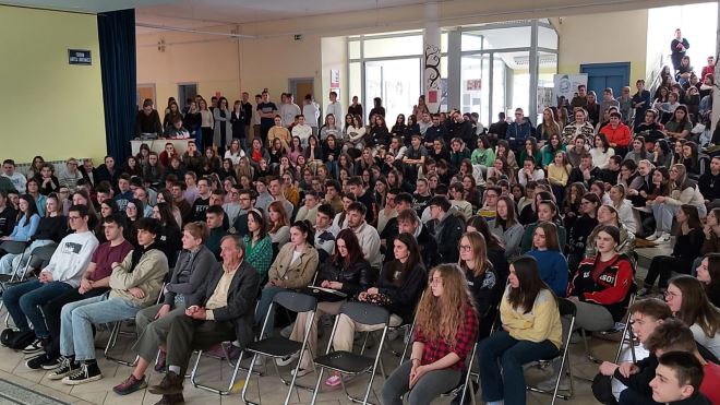 Materinski jezik je prvi jezik koji neka osoba nauči u svojoj obitelji i važno je makar na simboličan način obilježiti njegov dan, stoga su ove godine gimnazijalci ugostili mr. sc. Ivana Zvonara, autora knjige Pregled povijesti kajkavske usmene književnosti i dr. sc. Rajka Fureša, stoloravnatelja udruge Muži zagorskoga srca koja je nakladnik knjige. Ovo je treći put da su uvaženi znanstvenici gosti naše Gimnazije.