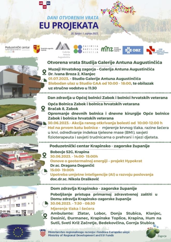 Time Muzeji Hrvatskog zagorja – Galerija Antuna Augustinčića odgovara pozivu Ministarstva regionalnoga razvoja i fondova Europske unije odnosno Zagorske razvojne agencije i pridružuje se zajedničkom događanju Otvorena vrata EU projekata kao dijelu obilježavanja desete godišnjice ulaska Republike Hrvatske u Europsku uniju, a kojim se promoviraju projekti koji su realizirani tijekom desetljeća korištenja EU fondova u Republici Hrvatskoj, kao doprinos razvoju lokalnih zajednica.