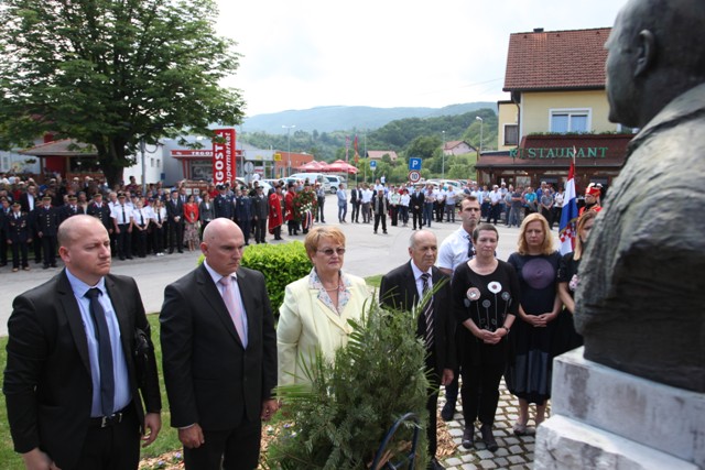 Cvijeće i svijeće pred bistom Gornjostubičkog heroja položili su brojni visoki dužnosnici i uzvanici, organizatori i obitelj Rudolfa Perešina.