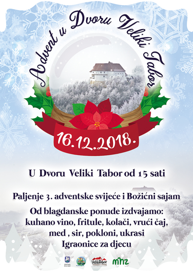 Treća je nedjelja u prosincu već nekoliko godina, unutar MHZ-a, rezervirana za svečanost paljenja treće adventske svijeće u Dvoru Veliki Tabor. Niti ova godina nije izuzetak. Stoga će se u nedjelju 16. prosinca okupiti u taborskome atriju brojni Desinićanci i njihovi gosti, ljubitelji Velikog Tabora, štovatelji tradicije.