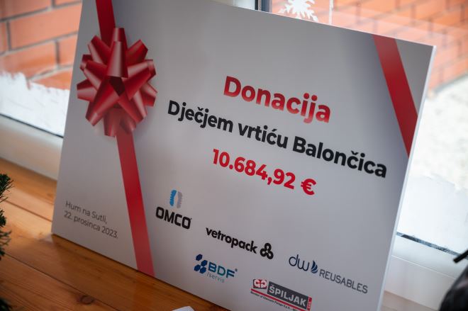 Vetropack Straža d.d., OMCO Croatia d.o.o., DW Reusables Hum d.o.o., BDF Servis d.o.o. i GP Špiljak d.o.o. ovogodišnju zajedničku donaciju namijenili su unapređenju rada dječjeg vrtića i poboljšanju uvjeta boravka djece.