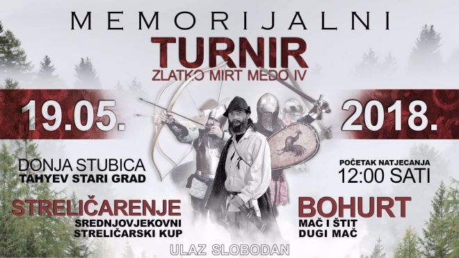 Pobjedu će odnijeti najbolji i najvještiji natjecatelji, za koje smo osigurali i vrijedne nagrade u ukupnoj vrijednosti od 5 tisuća kuna. Na oba turnira se mogu prijaviti svi koji zadovoljavaju pravila i odgovarajuću opremu. Pozvane su sve udruge iz Hrvatske i susjednih zemalja koje se bave ovim disciplinama i prikazom života u srednjem vijeku – pozvao je Štefek, dodavši kako je plan udruge kao organizatora da turnir postane tradicionalnog karaktera, kao još jedna manifestacija Gupčevog kraja s tematikom na srednji vijek, ali i sjećanje na Zlatka Mirta Medu IV, kao glavnog pokretača srednjovjekovne scene u Hrvatskoj. Turnir se održava 19. svibnja, s početkom u 12 sati.