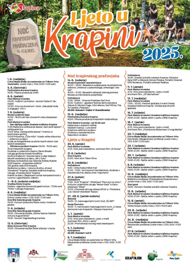 Ovog će ljeta Krapina ponovno ponuditi brojna zanimljiva zabavna, kulturna i sportska događanja Krapinčanima, ali i gostima. Uskoro, naime, počinje tradicionalna manifestacija, Ljeto u Krapini, u organizaciji TZ grada Krapine, Grada Krapine i POU Krapina.