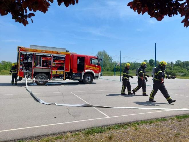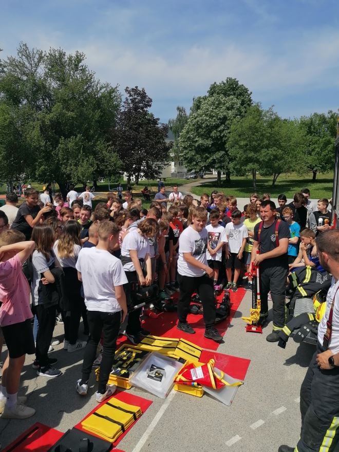 - Nakon što su se učenici evakuirali iz škole ugasili smo simulirani požar, a zatim održali kratku edukaciju o našem radu i opremi. Učenici su mogli su isprobati špricanje mlazom i rad s hidrauličnim alatom. Učenici sretni jer nisu bili na nastavi, a mi se nadamo da smo ih barem malo zainteresirali te da će uskoro neki od njih postati naši članovi – kažu vatrogasci.