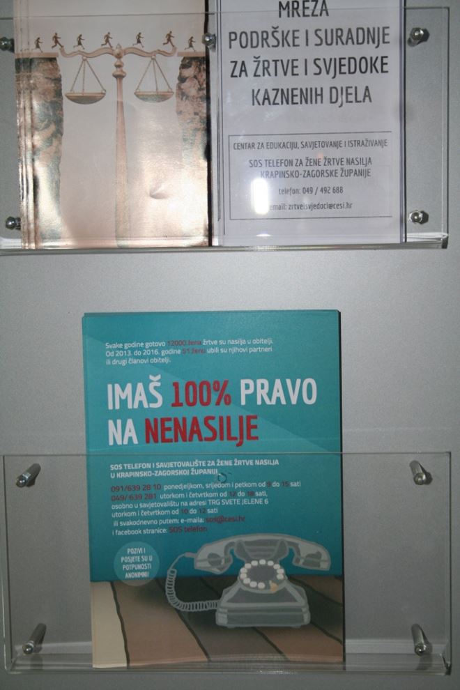 Udruga CESI, SOS telefon za žene žrtve nasilja Krapinsko-zagorske županije na području Krapinsko-zagorske županije započela je provedbu projekta “Mreža podrške i suradnje za žrtve i svjedoke kaznenih djela” kroz koji se između ostalog pruža i izravna podrška žrtvama i svjedocima kaznenih i prekršajnih djela pružanjem psihosocijalne i savjetodavne pomoći, emocionalne podrške, podrške pratnjom na sudu, državnom odvjetništvu i drugim vidovima informiranja o pravima i pružanja praktične pomoći.