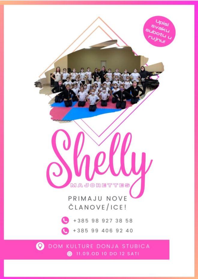 Stubičke mažoretkinje Shelly upisuju nove članove i članice od ove subote 11. rujna od 10 do 12 sati u Domu kulture u Donjoj Stubici. Upis novih članova i članica moguć je svaku subotu do kraja rujna.