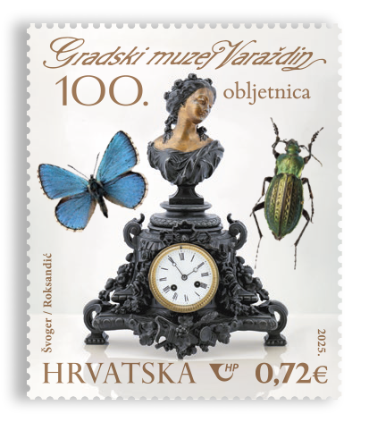 Hrvatska pošta stavit će u optjecaj 14. studenoga novu prigodnu poštansku marku u povodu 100. obljetnice Gradskog muzeja Varaždin, najvažnije kulturne ustanove u sjevernoj Hrvatskoj koja 2025. svečano obilježava stotu godišnjicu postojanja. Nominalna vrijednost marke iznosi 0,72 eura, a autor dizajna je Dean Roksandić, dizajner iz Zagreba. Na marki su prikazani ukrasni salonski sat s bistom žene, kukac trčak i leptir obični plavac, prema fotografiji Andreja Švogera, fotografa iz Varaždina. Nova prigodna poštanska marka izdana je u nakladi od 25.000 primjeraka te u arku od 20 maraka, a Hrvatska pošta izdala je i prigodnu omotnicu prvog dana (FDC).