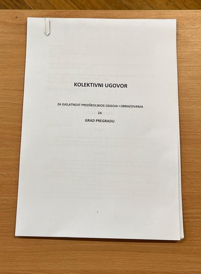 U gradskoj je vijećnici Grada Pregrade u četvrtak, 25.4.2024., potpisan prvi Kolektivni ugovor za djelatnost predškolskog odgoja i obrazovanja za Grad Pregradu. Osim gradonačelnika Marka Vešligaja i predstavnice Sindikata radnika u predškolskom odgoju i obrazovanju Hrvatske Iskre Vostrel Prpić, koji su potpisali ugovor, potpisivanju su prisustvovali i ravnateljica Dječjeg vrtića „Naša radost“ Pregrada Natalija Vrhovski i zamjenik sindikalnog povjerenika u vrtiću Matija Krizmanić. Nakon dvije godine pregovaranja, Kolektivni je ugovor potpisan na zadovoljstvo svih supotpisnika.