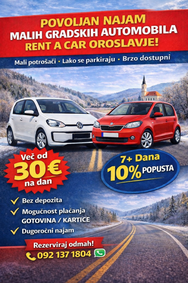 Ako tražite praktično i ekonomično rješenje za mobilnost, Rent-a-Car Oroslavje nudi idealna vozila za svakodnevne gradske vožnje i kratke izlete. Njihov fokus je na pouzdanosti, jednostavnosti i uštedi – kako biste se mogli posvetiti svojim planovima, a ne logistici.