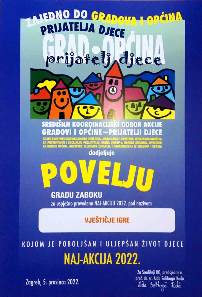 Povelja Gradu Zaboku za Naj-akciju „Vještičje igre“