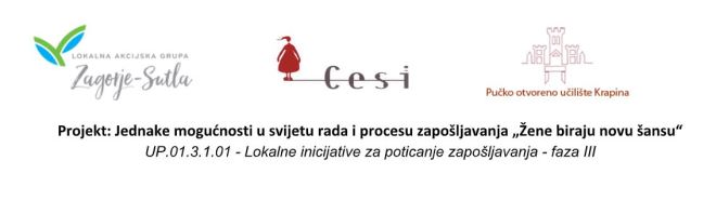 Kako bi smanjile diskriminaciju u svijetu rada i podržale dugotrajno nezaposlene žene u Gradu Zagrebu i Krapinsko – zagorskoj županiji, CESI, LAG Zagorje - Sutla i Pučko otvoreno učilište Krapina provode dvogodišnji program edukacija i podrške za dugotrajno nezaposlene žene i žene koje su na bilo koji način izložene diskriminaciji u svijetu rada i procesima zapošljavanja.