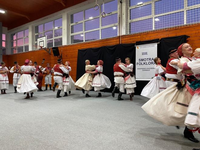 U Sportskoj dvorani Osnovne škole Side Košutić Radoboj, održana je u subotu 28. smotra folklora Krapinsko-zagorske županije. Na smotri je nastupilo 5 kulturno-umjetničkih društava s ukupno 146 izvođača, koji su izveli 5 koreografija, odnosno folklornih izvedbi.