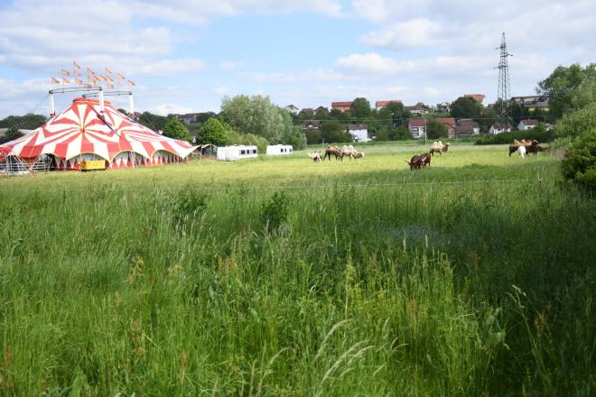 Bjelovarčanin Darko Šprihal nemalo se iznenadio kad je saznao da na njegovoj livadi trenutno žive - cirkuske životinje. Travu su na njegovoj imovini u blizini Južne obilaznice bezbrižno pasle deve, razne vrste goveda, konji... Blizu njih postavljen je i cirkuski šator, piše Večernji list.
