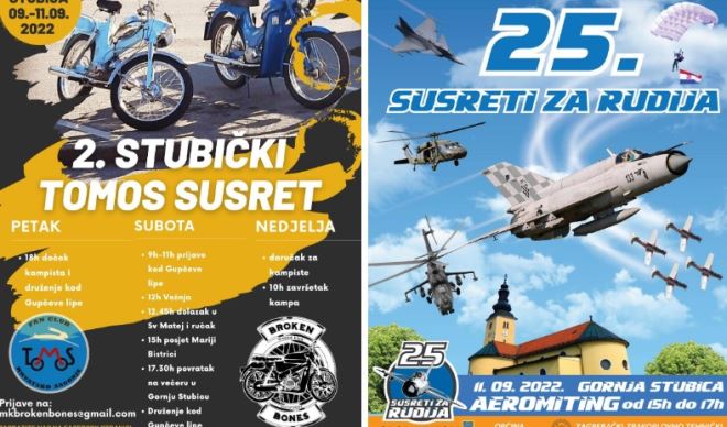 Nakon prvog izdanja Stubice festa koji je privukao preko 15000 tisuća ljudi i raskošnih večeri u atriju dvorca Oršić na redu je najveća letačka manifestacija u Hrvatskoj - Susreti za Rudija. Susreti za Rudija privlače svake godine na desetke tisuća ljudi, a ove godine sve ljubitelje spektakularnih prizora na nebu iznad Zagorja čeka pravi šou u nedjelju 11.9.2022.