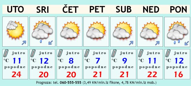 U srijedu će se izmjenjivati oblaci uz kraća sunčana razdoblja. Jutro će biti ugodno uz temperaturu oko 11°C, a tijekom dana će ugrijati malo iznad 20 Celzijevih stupnjeva. Uz više oblaka moglo bi ponegdje pasti malo kišice, ali radi se o maloj količini i kratkotrajnoj pojavi.