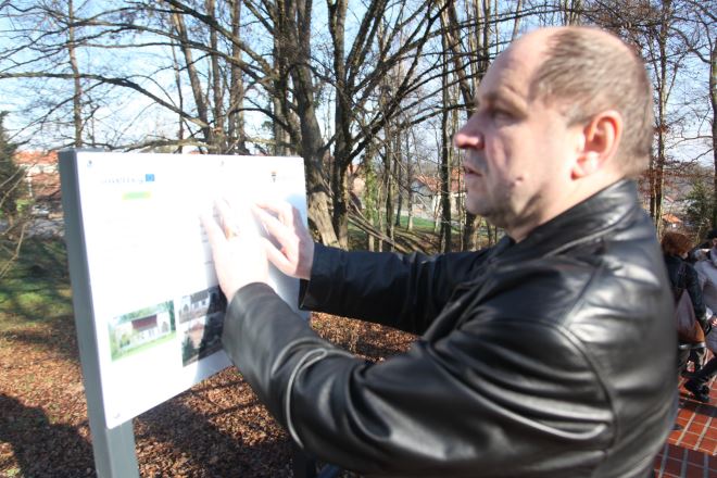 Na današnjem događanju predsjednik Udruge slijepih Krapinsko-zagorske županije Zlatko Deveničar pokazao je kako je perivoj uređen za osobe s invaliditetom te je pročitao jednu od tabli na Braillovom pismu.