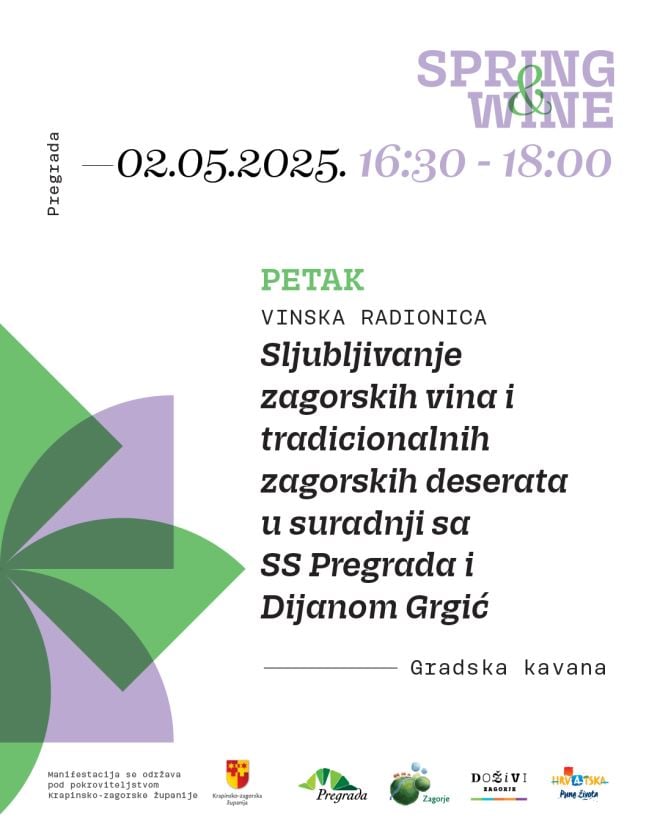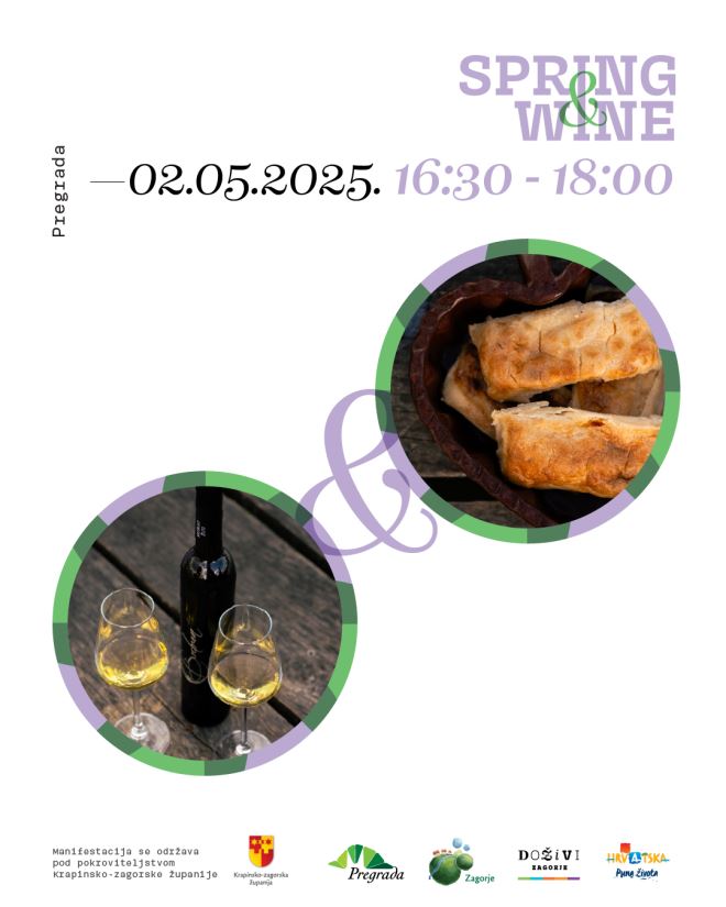 Manifestacija "Spring & Wine" održat će se u petak, 2. svibnja u Pregradi, pod pokroviteljstvom Krapinsko-zagorske županije.