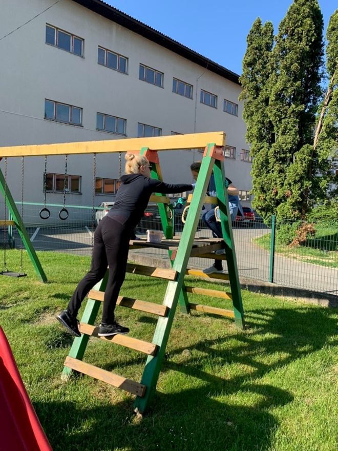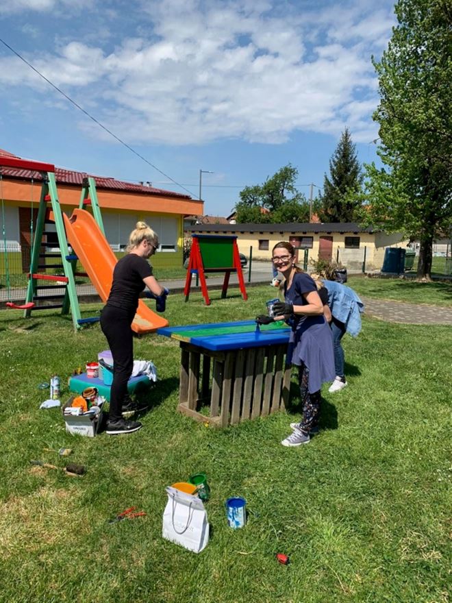 Svi djelatnici DV Pušlek iz Marije Bistrice su se prihvatili alata kako bi dječje igralište osvanulo u novom ruhu