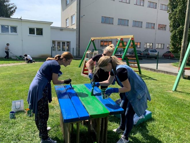 Ovih dana djelatnici Dječjeg vrtića Pušlek uhvatili su se u borbu ali ne sa Covidom-19 već sa korovom, travom i bojama. Naime svi djelatnici su se prihvatili alata kako bi igralište osvanulo u novom ruhu. Dok su se “iskusnije” odgojiteljice uhvatile u borbu sa korovom i pješčanikom, mlađe su se popele na sve sprave i osvježile boje. Proteklih dana djelatnice su uredile sobe dnevnog boravka.