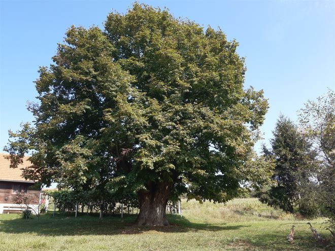 Vožnjom od Tuhlja prema Velikoj Horvatskoj skrenuli smo ulijevo prema selu Prosenik kojega, kao i mnoga druga sela krase pitomi zeleni bregi te njivama i livadama prošarani zagorski pejzaži. Zastali smo na omanjem bregu na kućnom broju 77 gdje nam je pažnju privukla stara lipa, doista impozantne veličine i lijepo formirane krošnje čija se starost procjenjuje na preko 400 godina.